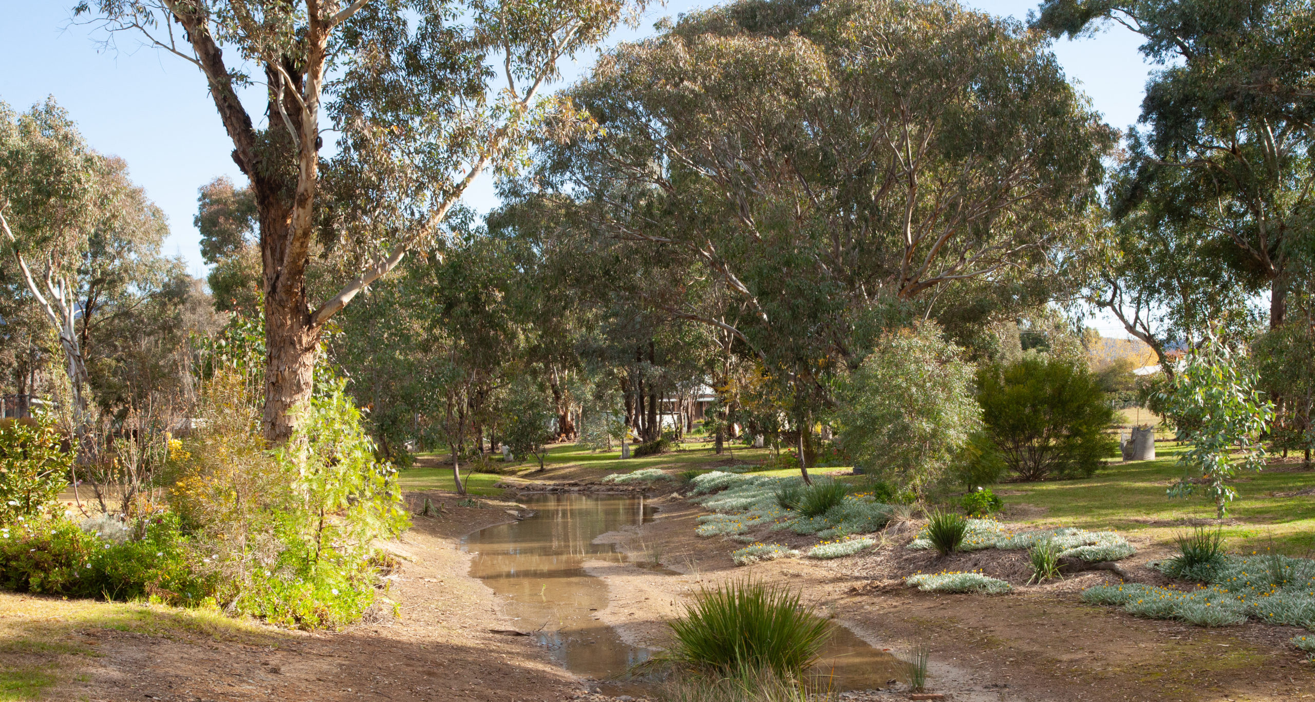 The Reeves have kept most of the original eucalyptus trees which provide shade and shelter to the garden from the harsh Mudgee weather. John and Wendy have created plots around many of the trees with the idea of generating an understory. In each plot a eucalypt stands sentinel over collections of annuals and natives chosen for their hardiness.